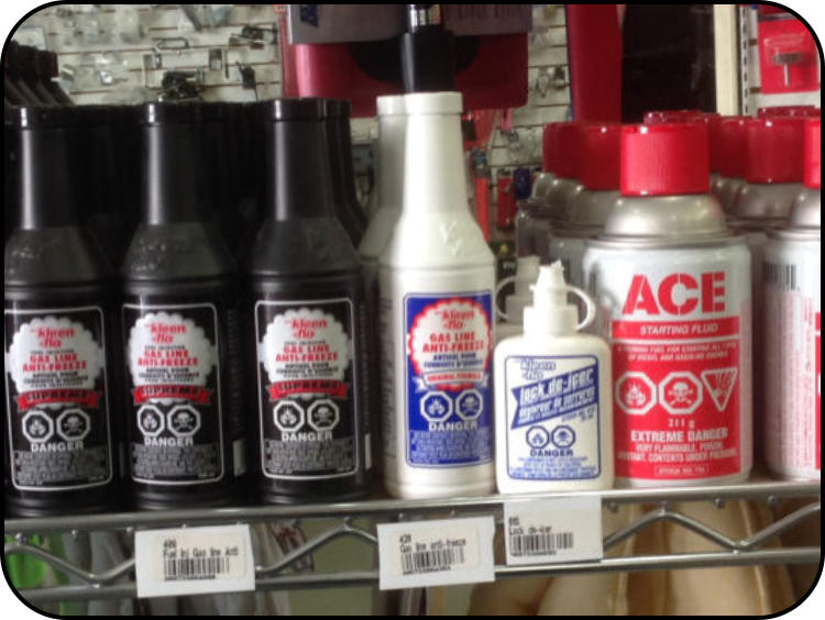 Grease, Belt Dressing, Transmission Fix, Brake Fluid, Air Brake Anti-Freeze, Power Steering Fluid, Washer